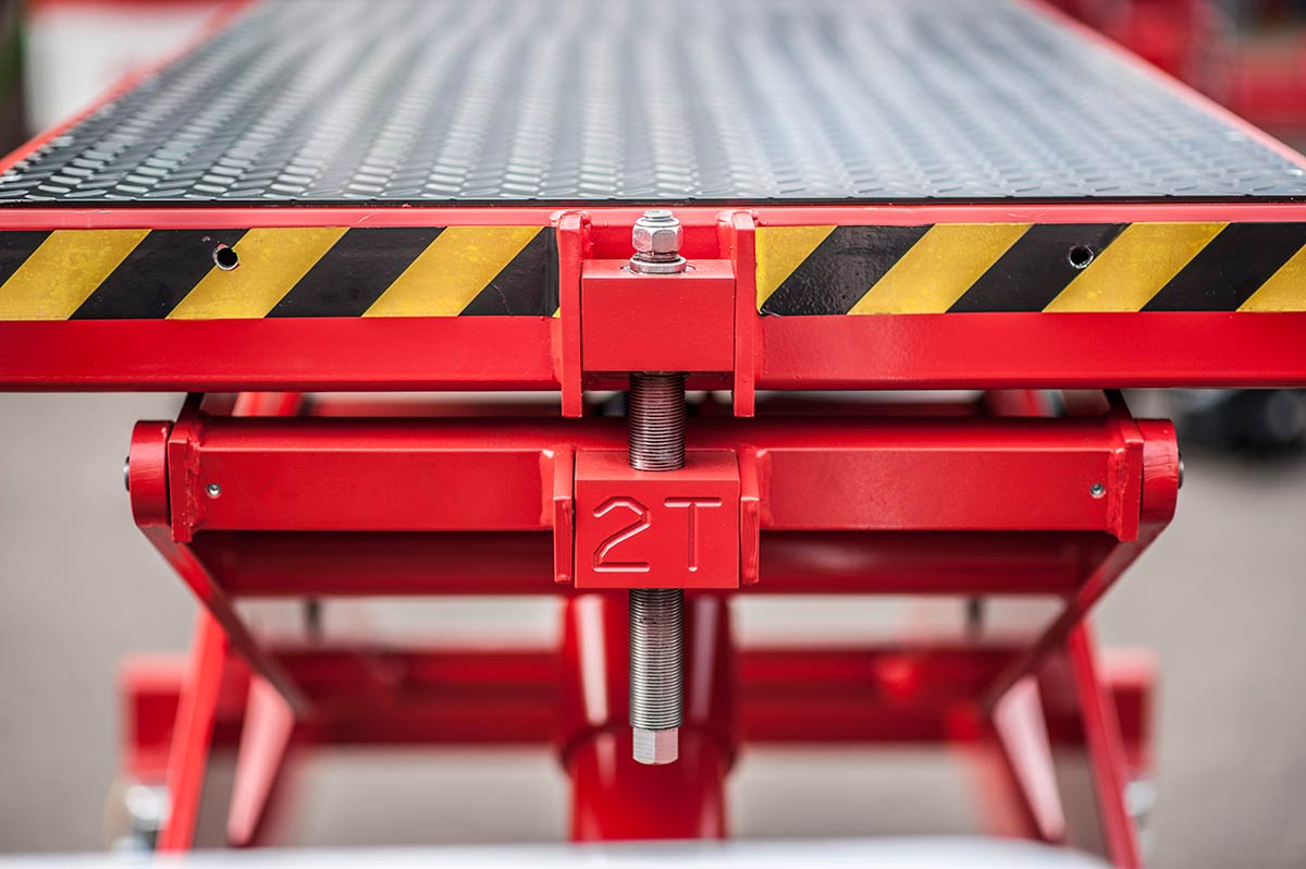 The scissor mechanism on our hydraulic scissor lift trolley utilises an oversized welded design. The table comprises a frame which moves on roller guides which also act as an anti-tilt device and a top made from 3 rigid plates which can be removed and replaced with special adapters.