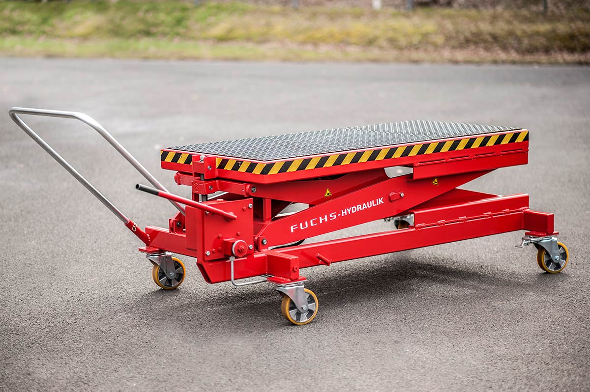 Fuchs Hydraulik lifting trolleys are CE certified and feature a simple and very robust structure. Four casters allow ease of movement, two of which are equipped with brakes.