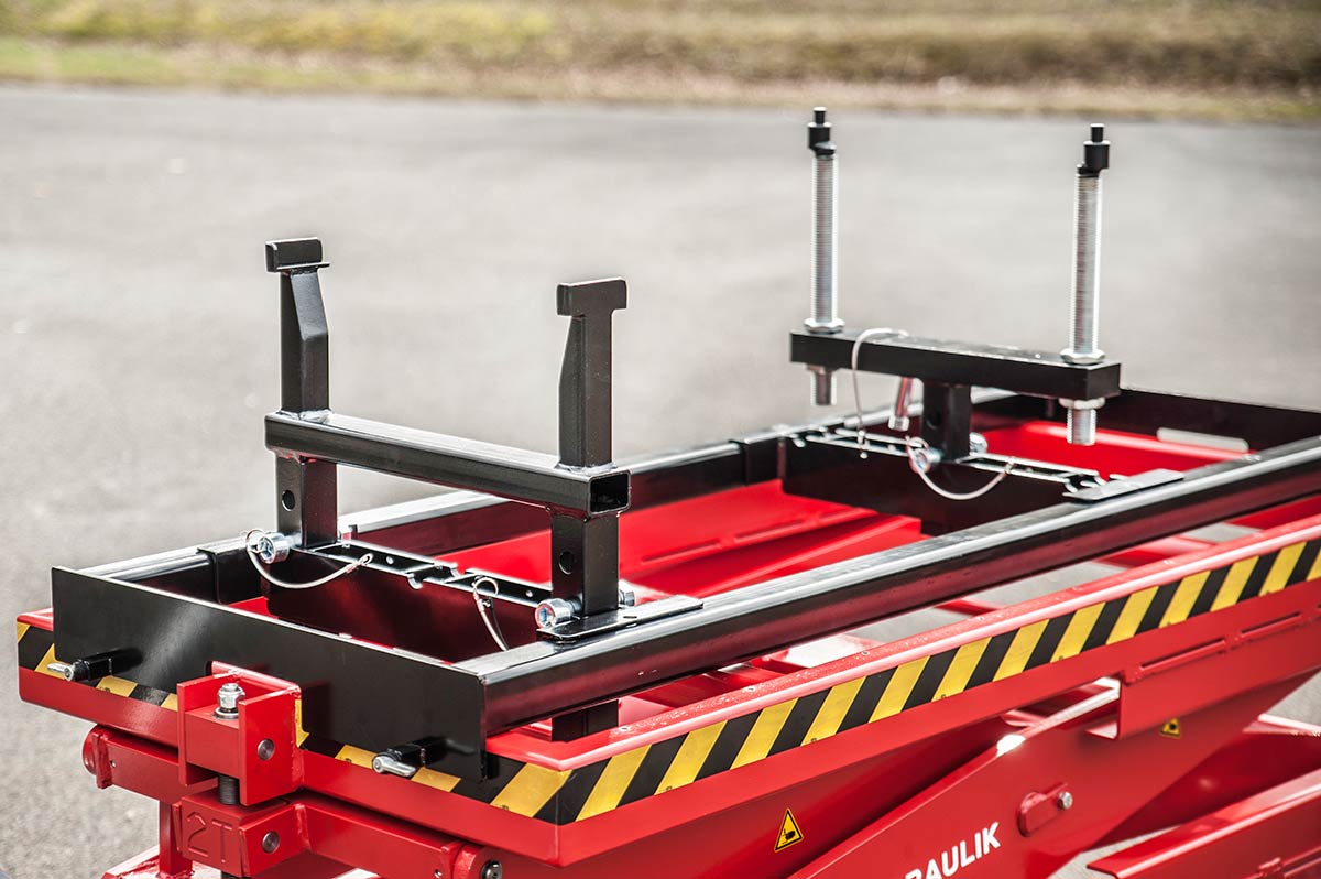 Our hydraulic parallelogram lifting trolley is constructed using an oversize welded design. Thanks to its very flat construction it is particularly suitable for the removal of bus engines on inspection pits.