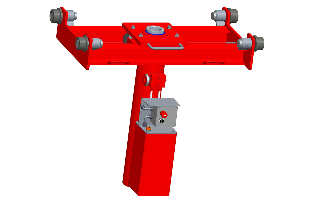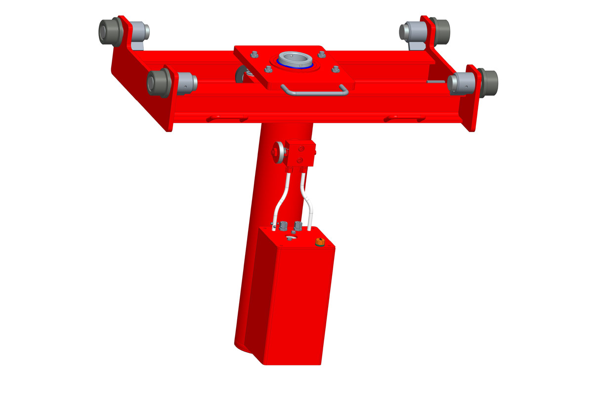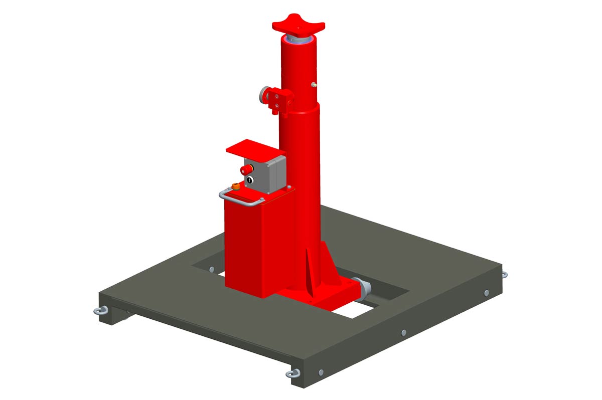 The lifting rams of our jacking units can be moved transversely allowing asymmetrical distributed loads to be lifted safely. Generously dimensioned pistons of solid material guarantee maximum stability without the use of additional support systems. The lowering of the load takes place via a continuously variable manual flow valve, which closes automatically on release.