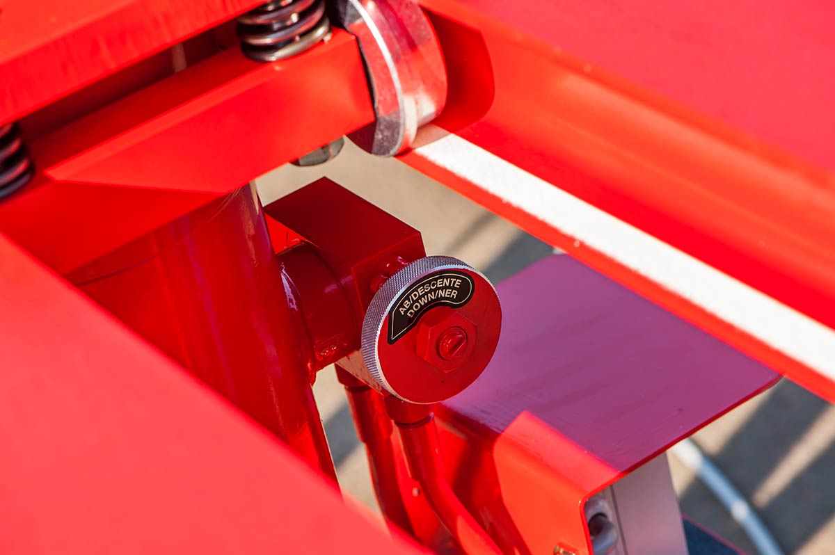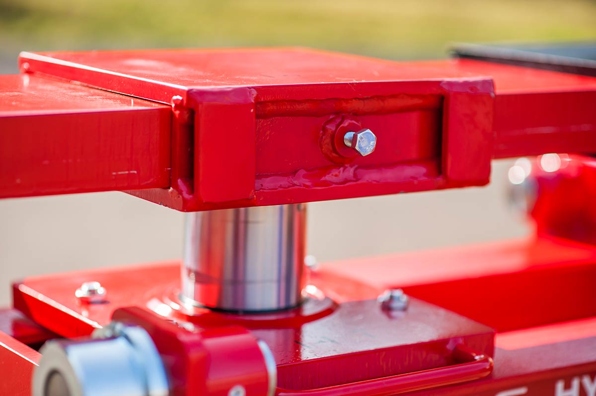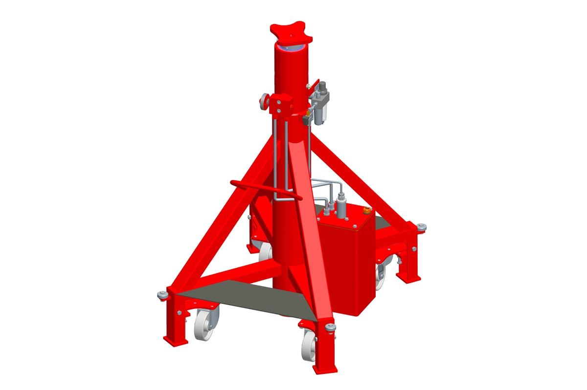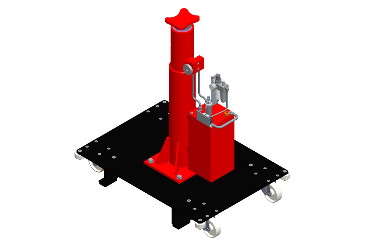 The lifting rams of our jacking units can be moved transversely allowing asymmetrical distributed loads to be lifted safely. Generously dimensioned pistons of solid material guarantee maximum stability without the use of additional support systems. The lowering of the load takes place via a continuously variable manual flow valve, which closes automatically on release.