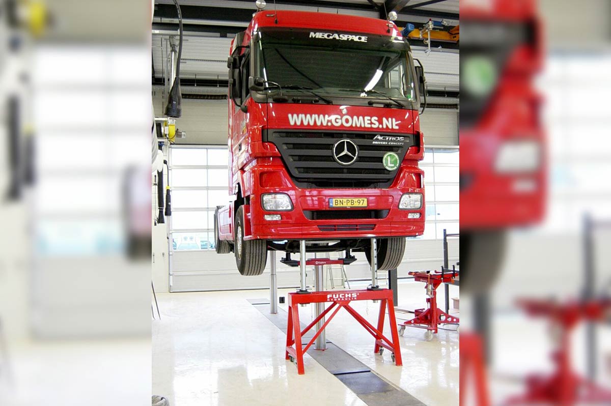 Fuchs Hydraulik manufactures support stands for commercial vehicle workshops. Our product range includes single and double safety stands. Both versions allow for height adjustment of 650 mm and are designed for a load of five, ten or fourteen tonnes depending on the model. As a German company with headquarters and production in Rhineland-Palatinate, with our support stands we stand for quality “Made in Germany”.