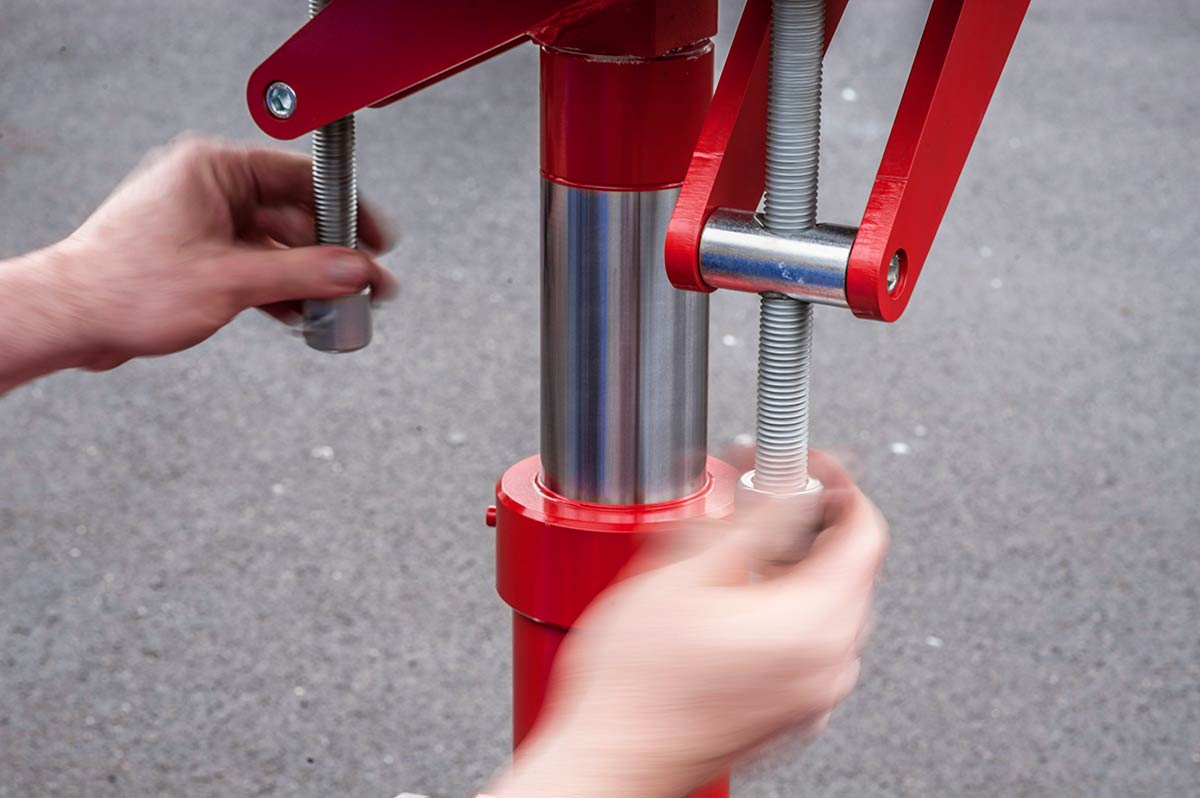 Alle Fuchs-Hydraulik Aggregateheber sind CE-zertifiziert und wartungsarm. Unsere Pumpenmechanik haben wir in den Öltank des Hebers integriert, wodurch sie vor Schmutz geschützt ist und ein langes Arbeitsleben vor sich hat. Ein Einsatz der Heber ist in Arbeitsgruben ebenso möglich, wie an Hebebühnen. Die Heber können von einer Person bedient werden.